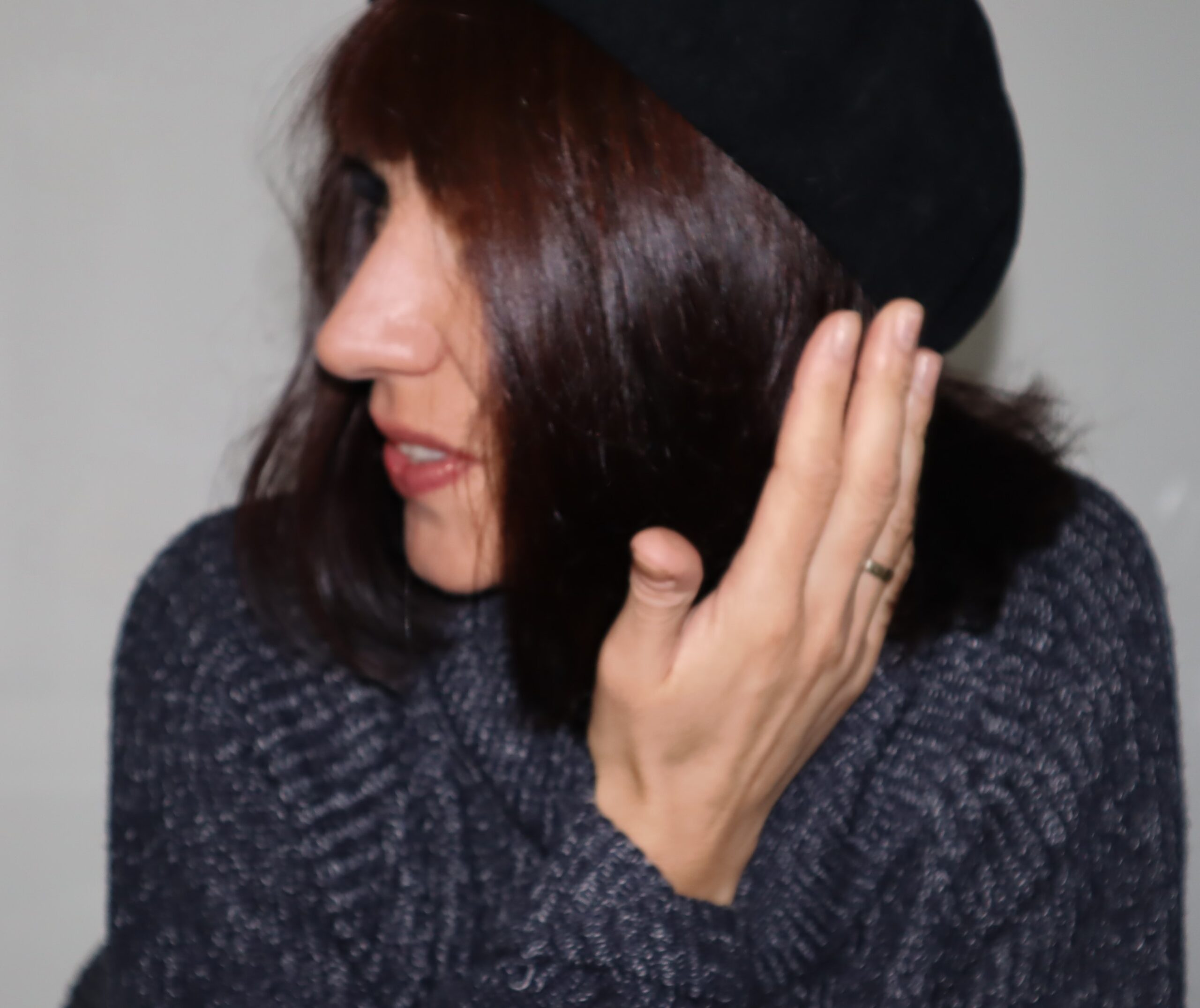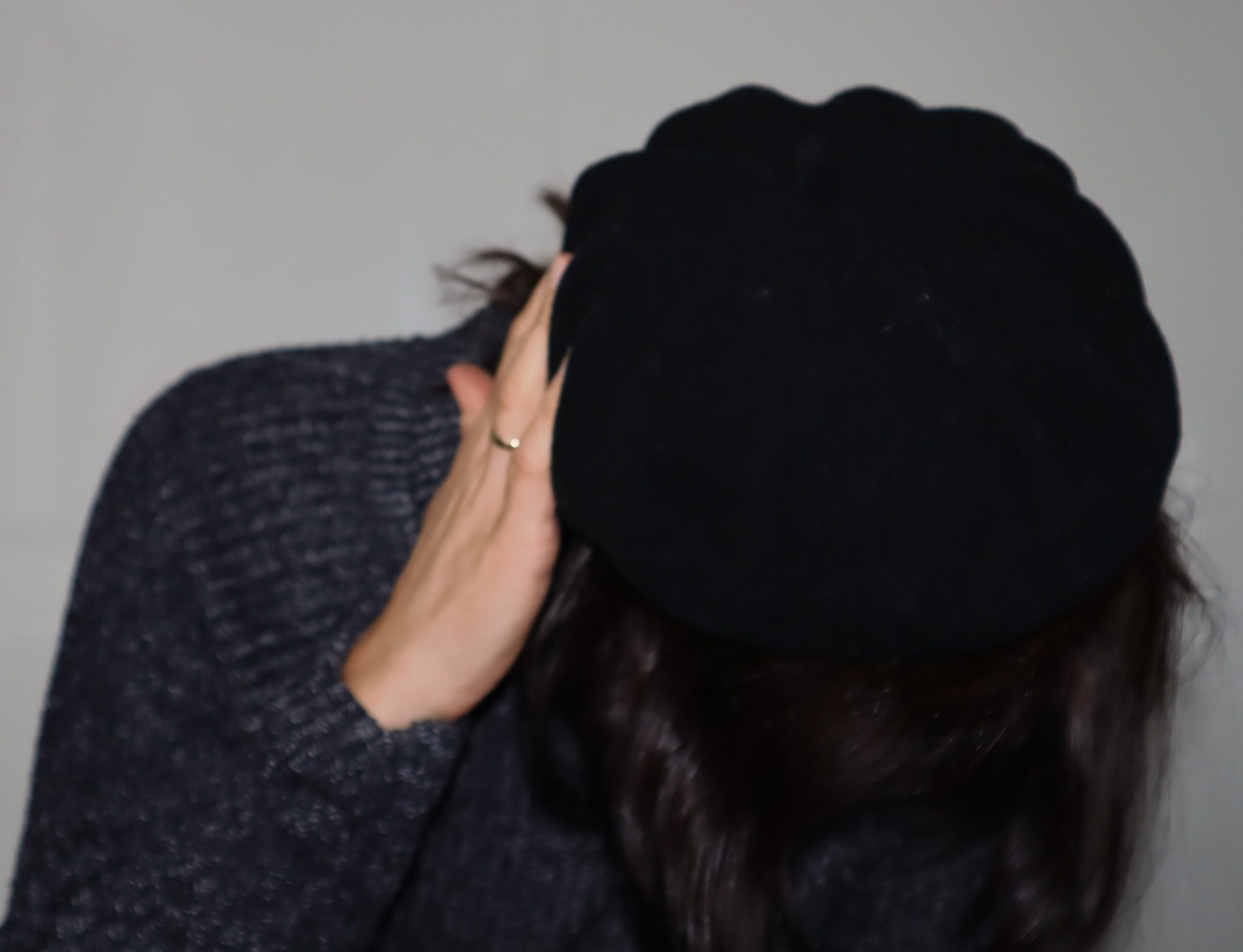 Czarny beret, doskonała ozdoba na jesienne dni.