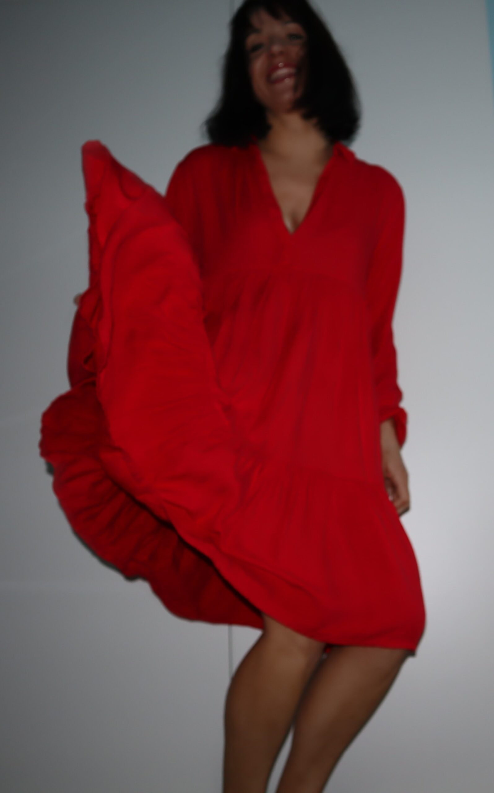Koszulowa sukienka Medicine. Intensywna czerwień, zapinana na guziczki, mały kołnierzyk. Luźna.