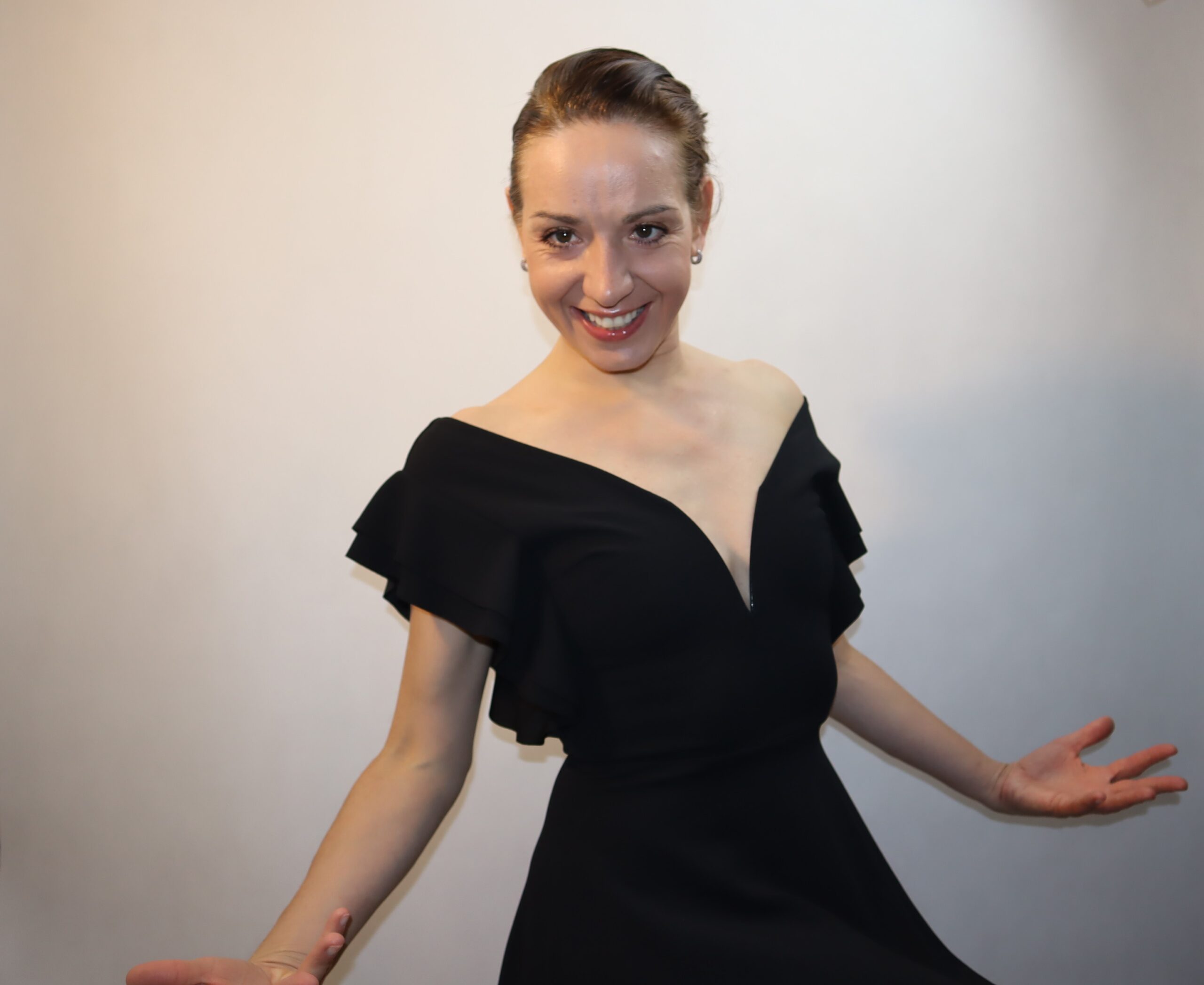 Sukienka koktailowa, czarna, odkryte ramiona, Wal G.